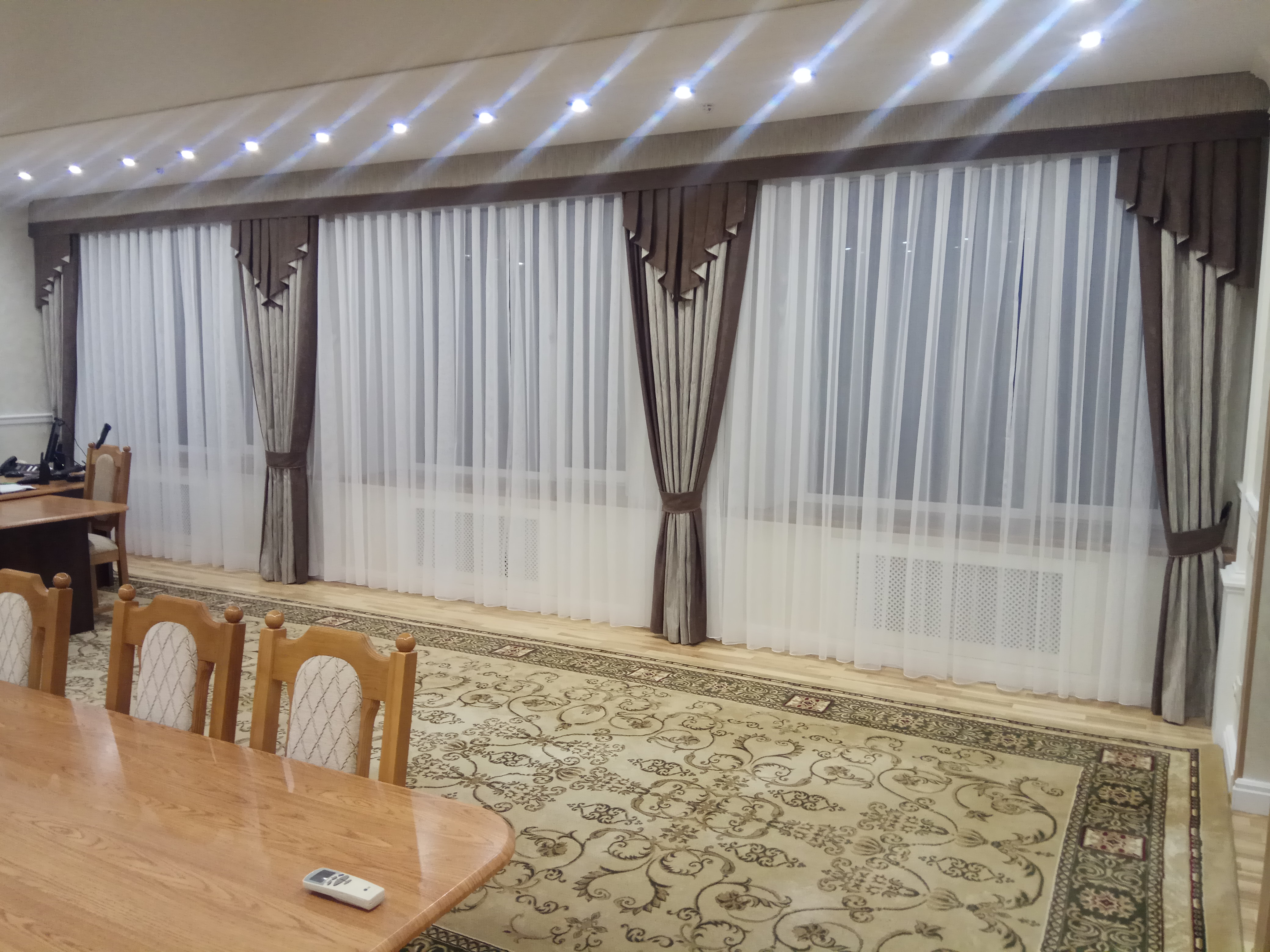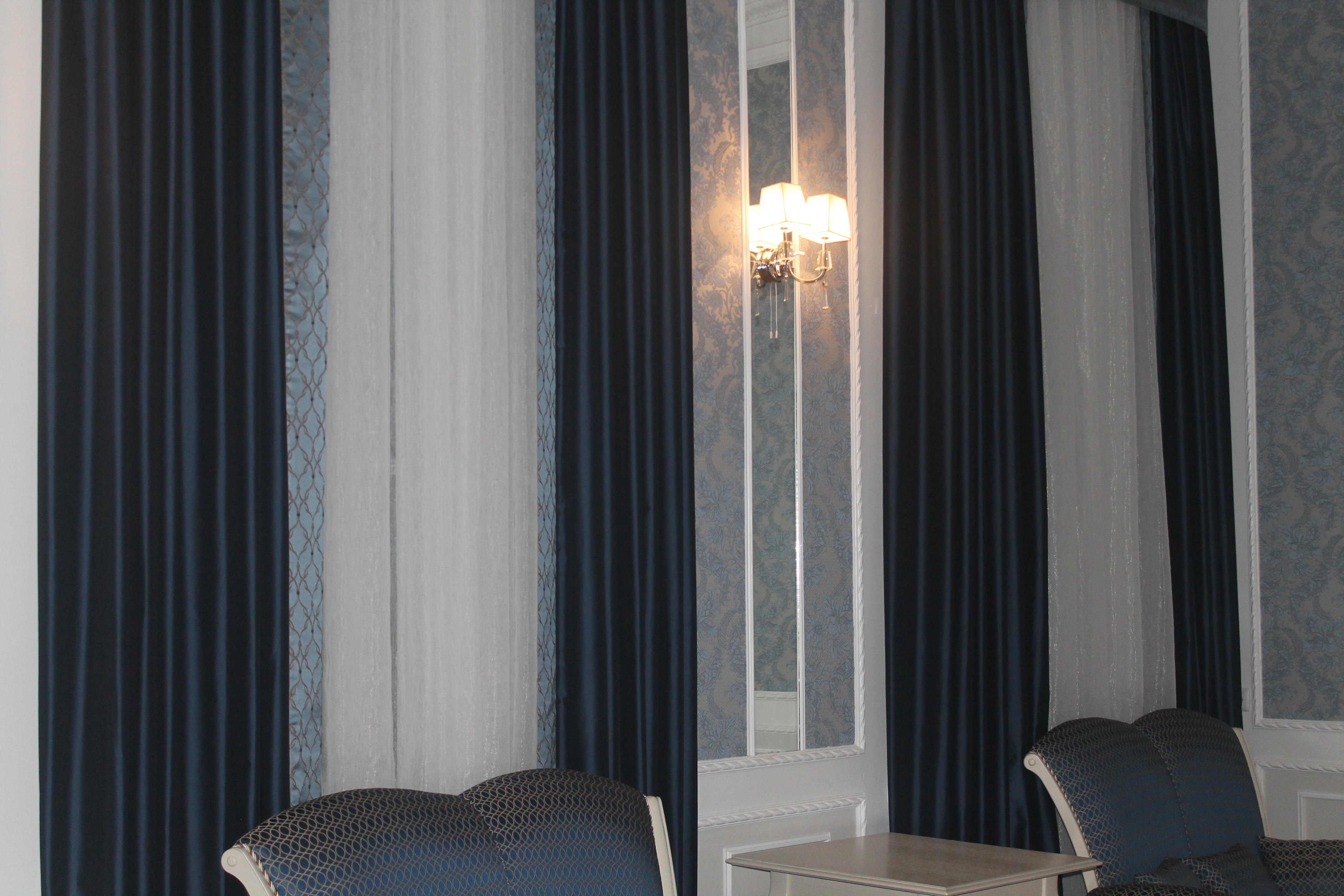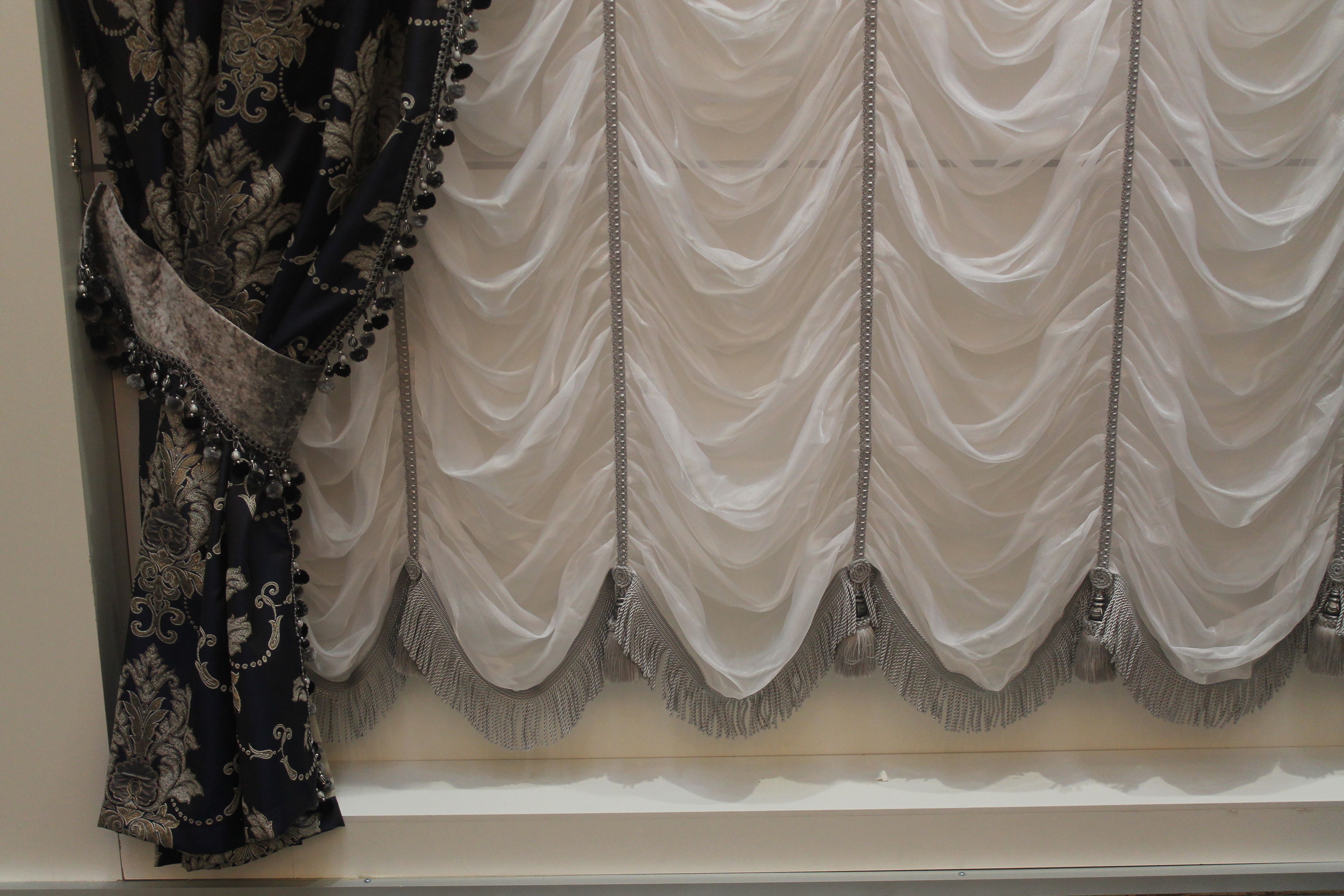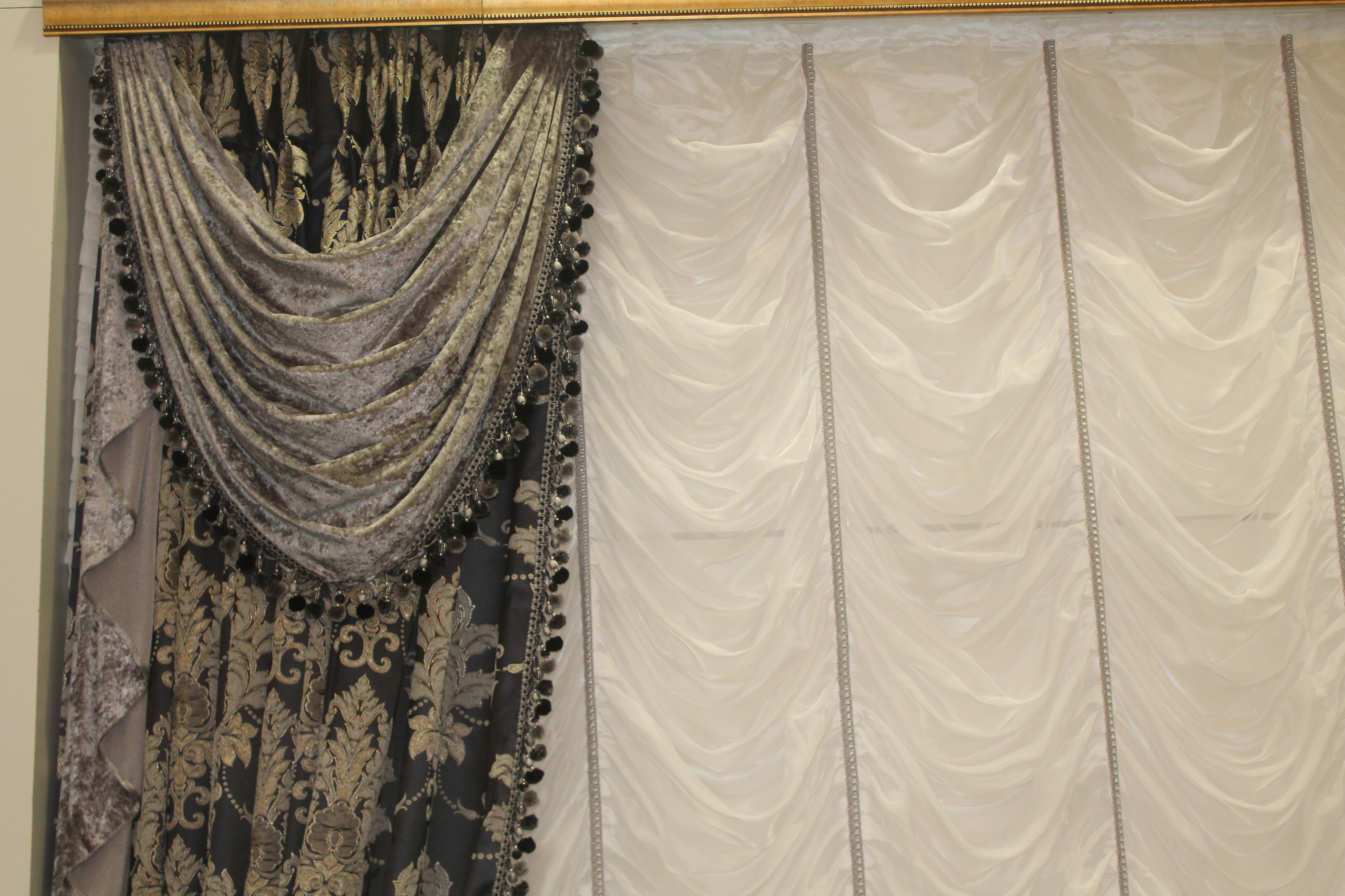 Мы работаем со всеми видами тканей: бархат, шенилл, сатин, вуаль, жаккард, органза, гобелен, тафта, тюлевые ткани, все виды скатертных тканей. Также мы работаем с негорючими тканями с волокнами TREVIRA CS, огнестойкость которым обеспечивает модифицированный полиэфир.