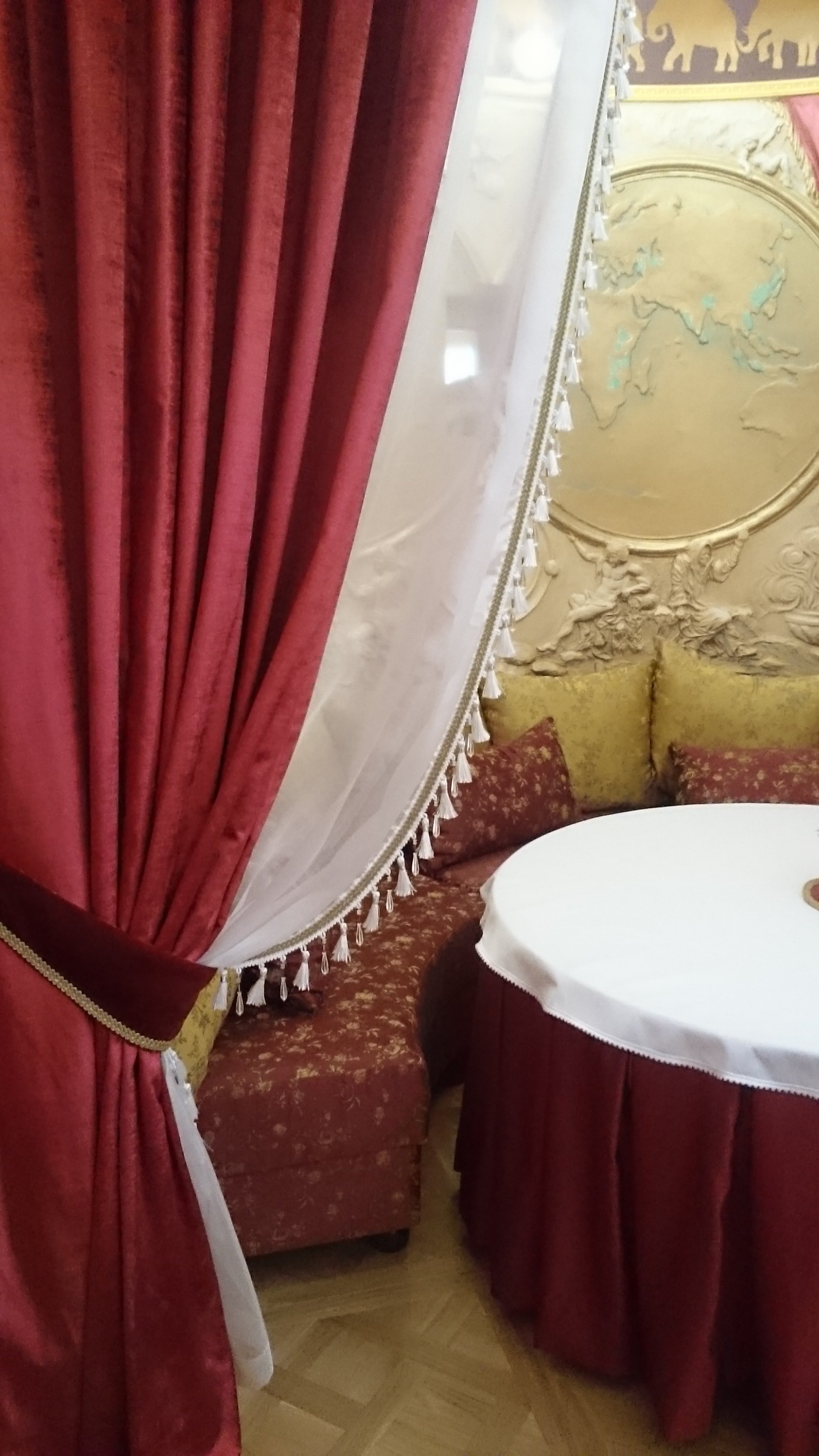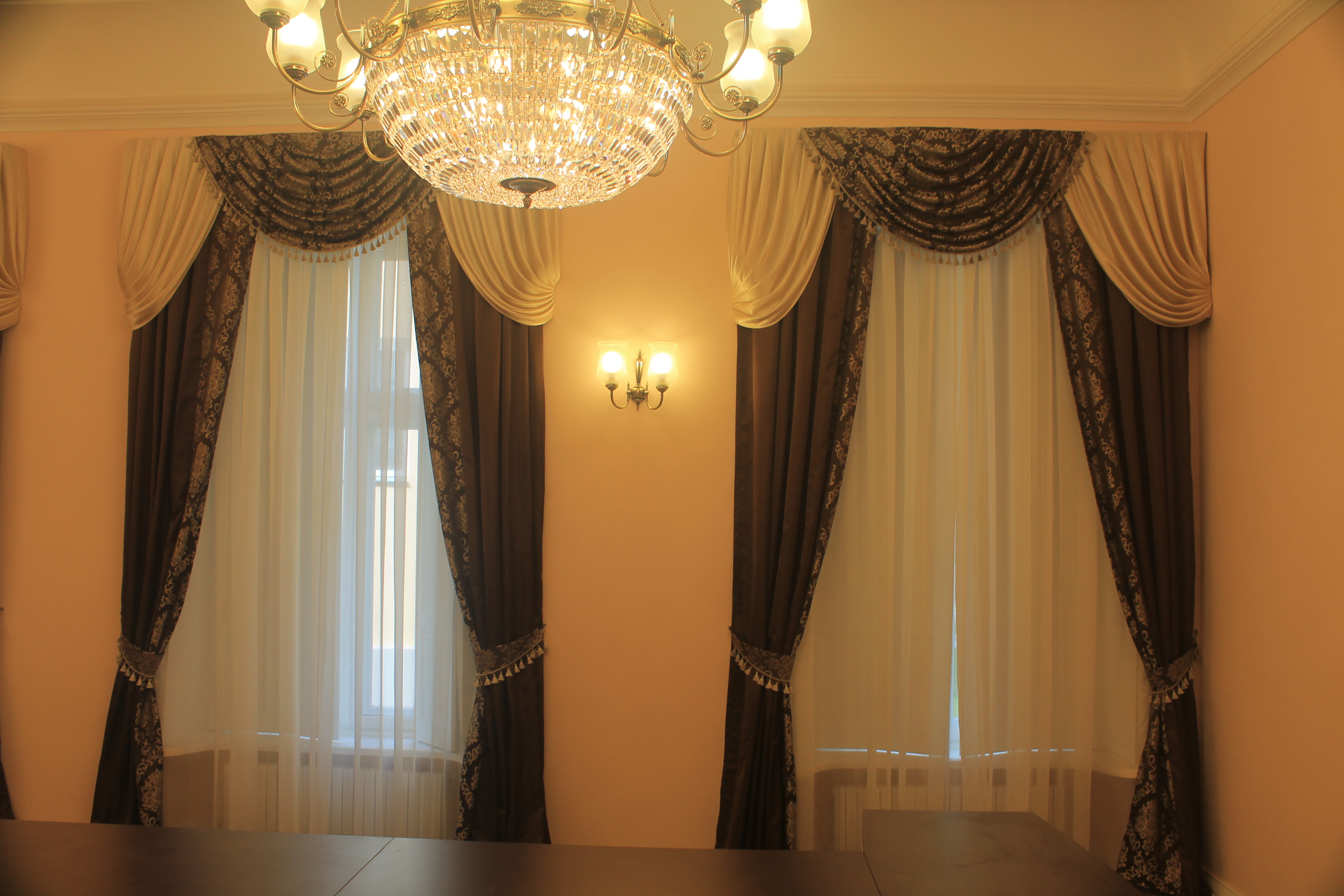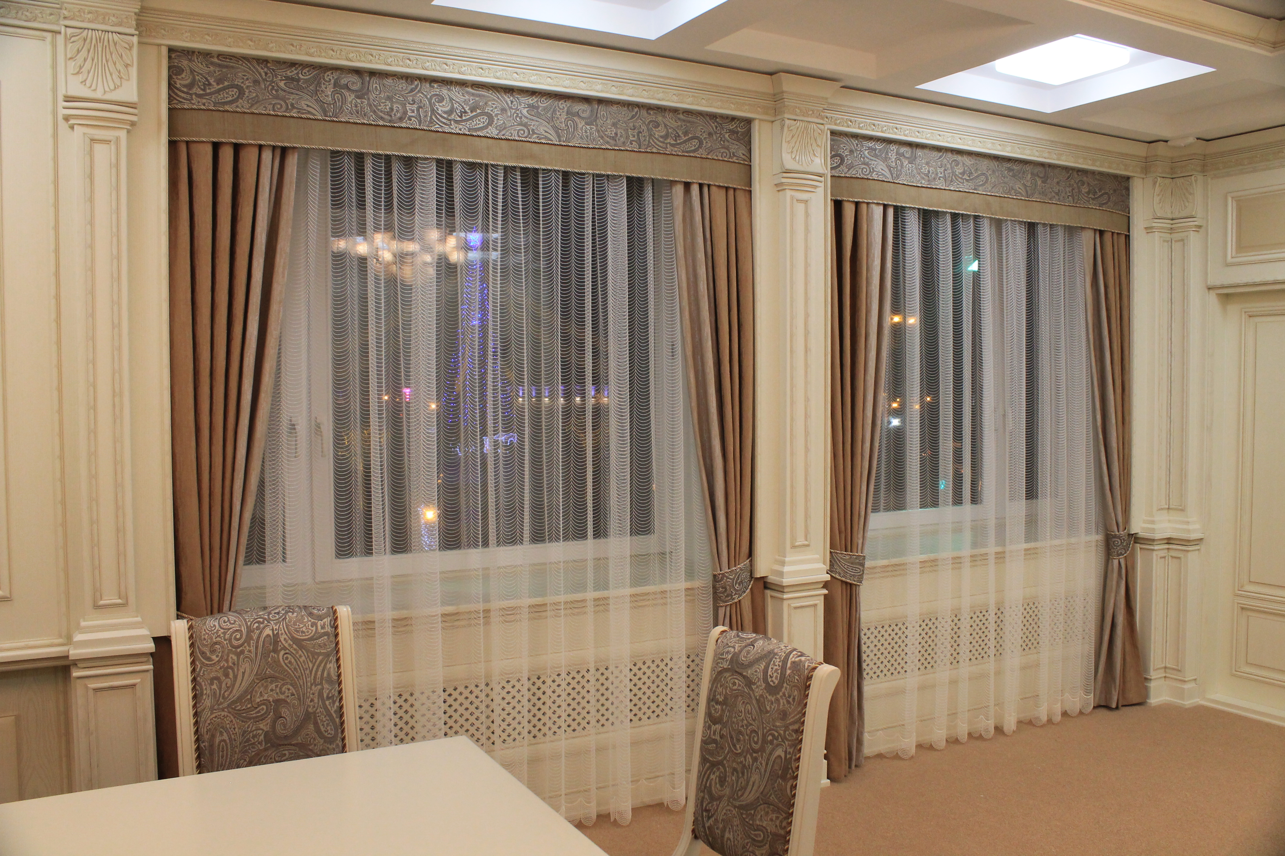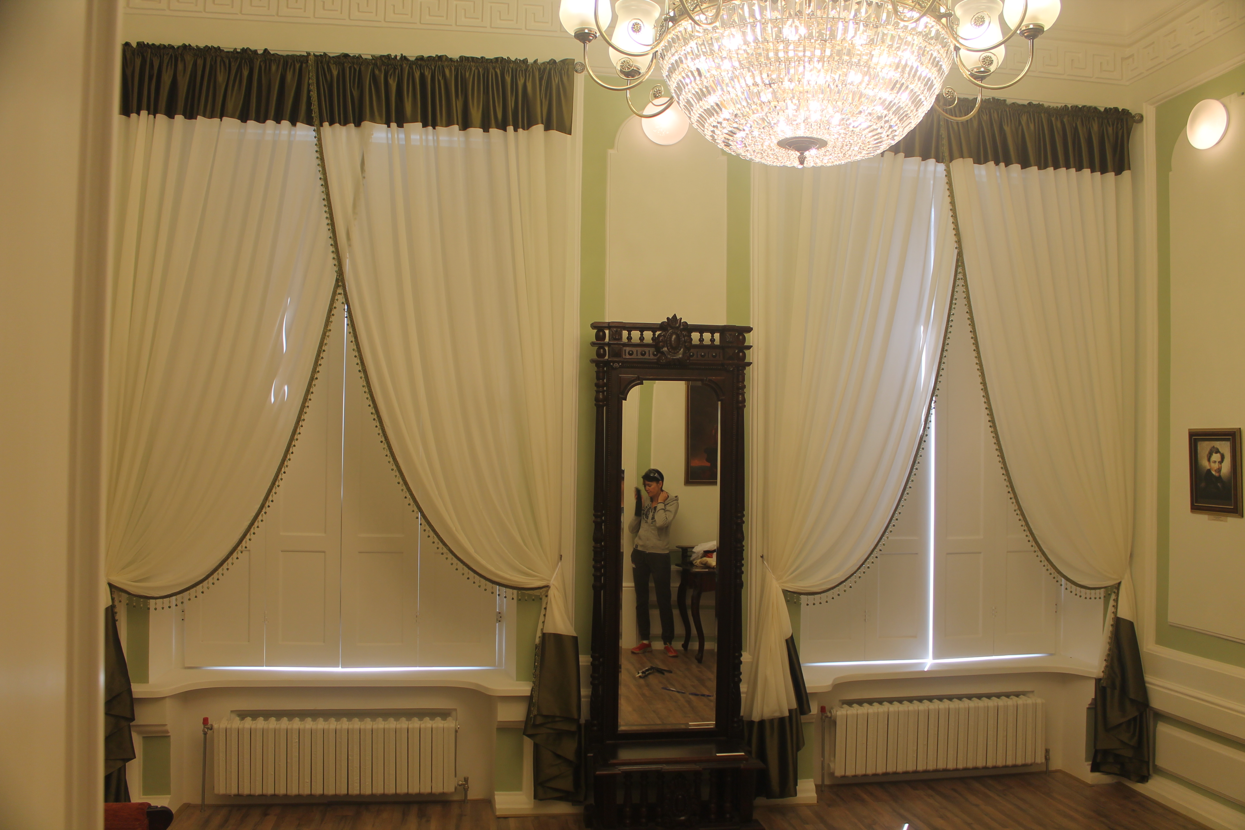 Мы работаем со всеми видами тканей: бархат, шенилл, сатин, вуаль, жаккард, органза, гобелен, тафта, тюлевые ткани, все виды скатертных тканей. Также мы работаем с негорючими тканями с волокнами TREVIRA CS, огнестойкость которым обеспечивает модифицированный полиэфир.